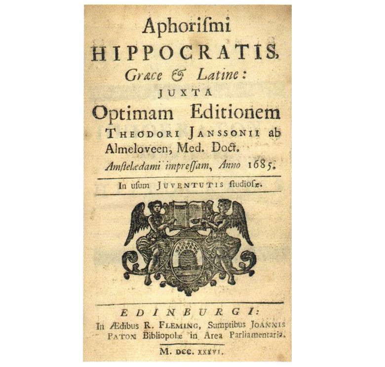 Figura 15: Edición de 1685, impresa en Edinburgo, de los Aforismos Hipocráticos.