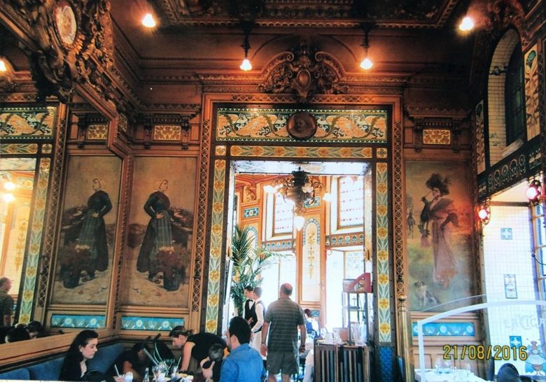 La ciudad tiene un perfil bastante parisino con calles y avenidas amplias y bloques de edificios iguales de cuatro o cinco plantas coronados con sus techos empinados de pizarra gris, sus múltiples chimeneas de ladrillo y una o dos hileras de bohardillas cuyas ventanitas parecen abrirse al cielo. Portales de ingreso bonitamente trabajados y muy amplios, rodeados de vidrieras en arcadas. Cestos con plantas y columnas de luces en las veredas, todo muy ordenado y tranquilo. A una docena de cuadras del hotel- que anteriormente había sido el Correo Central de Nantes- dimos con un barrio o quartier muy interesante: el Greslin. Alli se muestra una sucesión de casonas importantes con frentes de piedra trabajados y elegantes balcones de hierro forjado, muy art nouveau del siglo XIX. Antiguo barrio judío, es ahora un punto de atracción turística con un importante teatro de líneas greco-romanas sobre la plaza central, donde hay fuentes, trencitos para niños y un bello parque que se cierra en la noche. Sobre esta plaza, nos encontramos con la joya gastronómica del lugar, la brasserie La Cigale con una atractiva decoración y una exquisita comida.