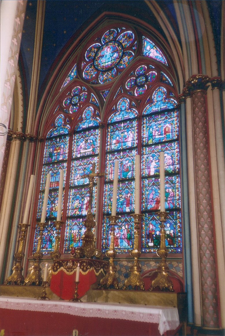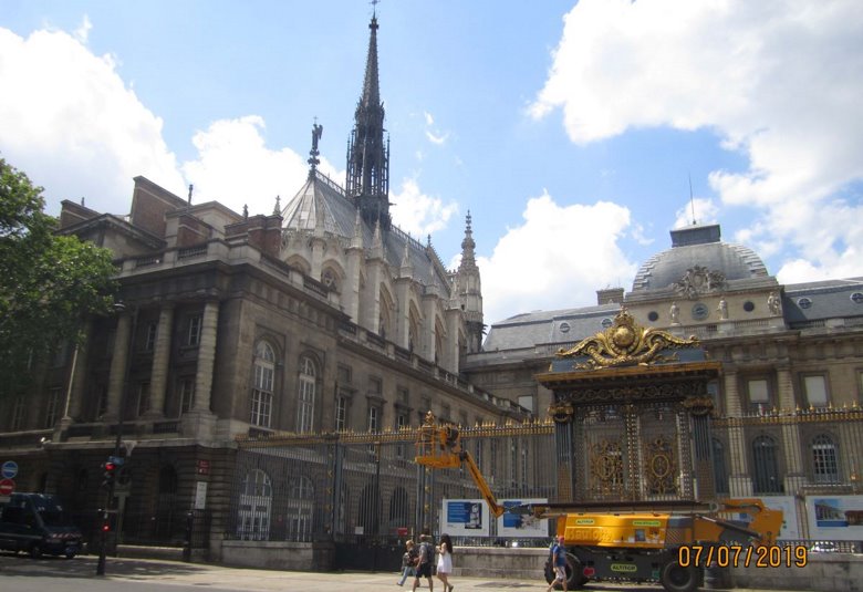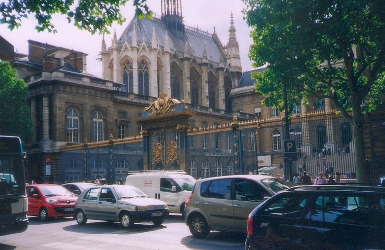 Por el puente Nuevo (Pont Neuf), se ingresa al extremo noroeste de la isla mayor, donde se levanta el Palacio de Justicia, magnífico edificio de estilo gótico, aunque después de la Revolución se hicieron cambios y modificaciones. En el siglo XIII, dentro del palacio, el Rey Luis (que luego fue santificado), erigió una bellísima capilla como custodia de una reliquia, la sagrada corona de Thorns, proveniente de uno de los emperadores de Constantinopla y que durante los años de la Revolución, fue destruida. La Saint Chapelle o Capilla de San Luis es una verdadera joya arquitectónica, la más hermosa que jamás visitara durante el día (por la luz en los vitrales) y en su momento nos impresionó de manera perdurable. Aún recuerdo, que tras subir una incómoda escalera de un piso, nos introducimos en un ambiente casi mágico. Las paredes de la capilla, de etéreo y frágil aspecto, están constituidas casi exclusivamente por enormes vitrauxs de increíbles colores y con motivos que varían en cada caso, por donde los rayos del sol se filtran formando un arco iris luminoso. En esa primera visita, se exhibía en una pequeña vitrina de cristal una corona de oro, delicadamente trabajada aunque ignoro si se trataba de una réplica de la reliquia santa (restos de la cruz de Cristo, traida por San Luis de Oriente) o de otra obra de arte. Muchas veces hemos regresado a este lugar maravilloso para renovar el asombro de la primera vez. Y en el julio o agosto parisino, pequeños conciertos al atardecer, nos han brindad reiteradamente la calidez del lugar con la magia de pianos y violines para consumar un éxtasis sensorial.