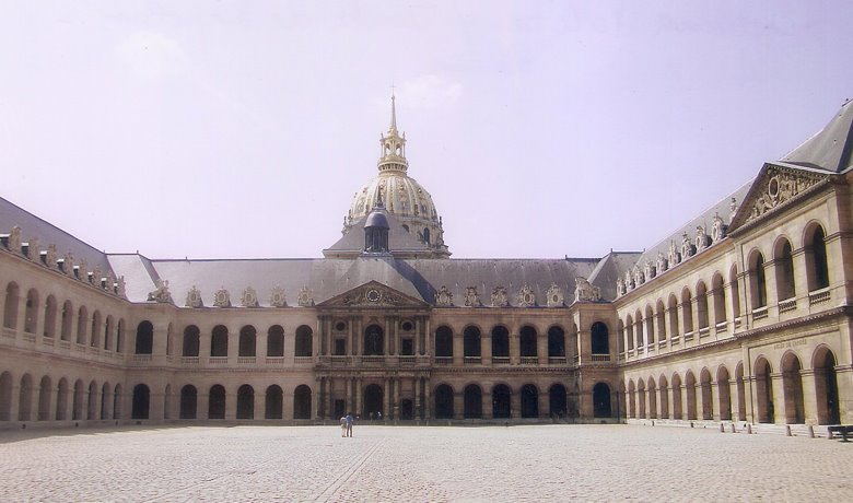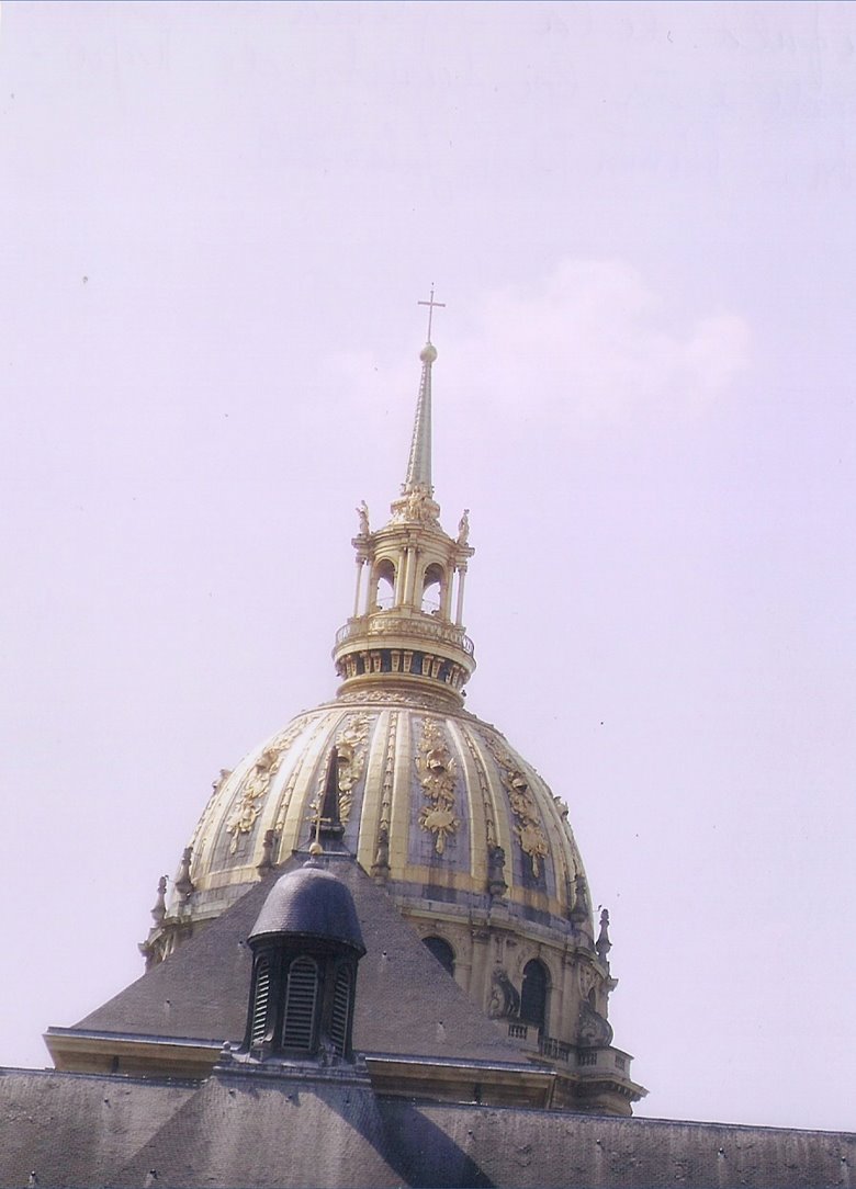 El Domo es una elevada cúpula dorada, que multiplica la imponencia del magnífico lugar, se inauguró 20 años después. Un siglo más tarde, al comienzo de la revolución, el pueblo invadió el lugar, retiró sus armas y con ellas, fue a tomar la gran prisión de la Bastilla. Otro siglo más tarde, el lugar fue elegido como regia tumba del Emperador Napoleón. La visita puede iniciarse a partir del sena, luego de cruzar el puente Alejandro III o bien, viniendo de los jardines arbolados que se extienden en la zona. Nosotros lo hemos atravesado en ambas direcciones en distintas fechas. Si se ingresa desde el río, se atraviesa la explanada, lugar de jardines arbolados hasta un magnífico Portal flanqueado por dos pabellones que se extienden en forma simétrica produciendo un frente magnífico de más de 200 metros. Múltiples trofeos como cañones de bronce de la guerra del 14, estatuas y escudos, adornan los alrededores. Pasado el portal se luce una estatua a caballo de Luis XIV. A continuación una edificación de tres plantas con arcadas regulares en la base, rodea un amplio patio.
