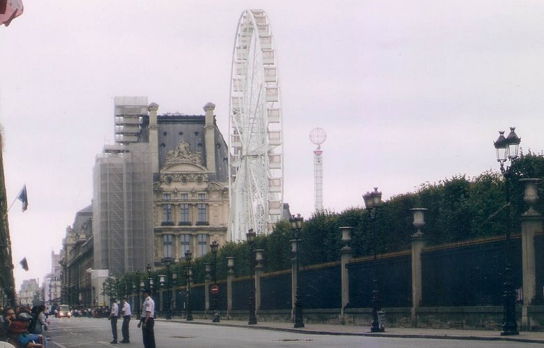 Siempre por el centro, un recorrido agradable incluye la place Vendome, cuya enorme columna central ha sido recientemente restaurada y luce bellísima. Es una plaza muy amplia bordeada por edificios suntuosos iguales y con el clásico perfil parisino, ocupado por comercios de lujo, joyerías, relojerías, algún hotel y múltiples oficinas. Si desde allí caminamos en dirección a los palacios del Louvre daremos con una calle transversal, muy distinguida: la rue Saint Honeré, con sus restaurants y hoteles de clase alta, joyerías, boutiques y coquetos negocios. Da placer caminar sus veredas y si hay fuerzas, desembocaremos por alguna calle lateral con el palacio del presidente de Francia, rodeados en ese entonces, por fuerzas de seguridad que nos desviaron a calles laterales. De allí se sale a Champs Eliseé, con el “Palais de Grass” (palacio de vidrio) en la vereda opuesta y lejos, bastante lejos, el Arco de Triunfo que ya mencionamos. También podemos caminar por la calle paralela a los museos del Louvre, rue Rívoli. Primero veremos frente al museo Oficinas centrales del Palais Royal, que dan a una plaza pequeña, luego una maciza sucesión de edificios con arcadas en su base (muy adecuada para los días de lluvia) ocupada en parte por la gran sociedad de anticuarios de París. Allí puede comprarse y venderse a buen precio, antigüedades, joyas adornos, etc. Siguiendo unas cuadras más hasta boulevard de los Capuchinos, encontraremos una rueda gigantesca en margen izquierdo (hacia el río). A la derecha se destaca la estatua a caballo de Juana de Arco y desde ese punto, terminados los edificios del Louvre, tenemos a la vista la rivera derecha del Sena que se ha modernizado, con áreas de sombrillas y cafetería además de las viejas barcazas y lanchas para los paseos en el río.