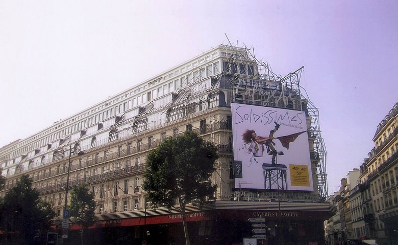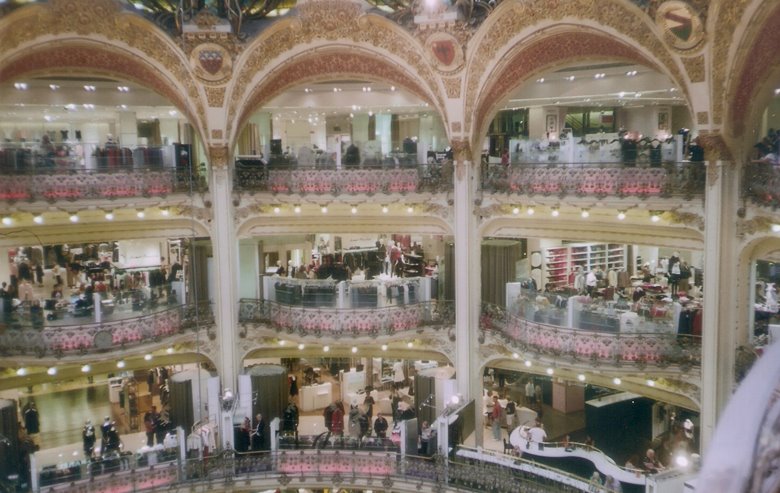 Por detrás del imponente edificio, se encuentra el distrito comercial ocupado por las principales tiendas cuya avenida se continúa con el famoso boulevard Houssmann. De construcción refinada, con enormes vidrieras y fenomenal exhibición de confecciones de moda, el recorrido de estos templos paganos del vestir, también vale una visita aún sin ánimo de compras. Entre ellas, se destaca sin dudas, la