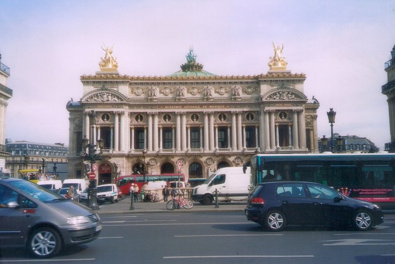 Saliendo de la Madeleine, si caminamos por el boulevard de igual nombre y luego por el de los Capuchinos, llegamos al gran edificio de la Ópera de París. Esta hermosa construcción, también de estilo clásico, guarda ciertas reminiscencias con los palacios italianos. Fue completada a finales del siglo XIX y se la considera como el teatro más grande del mundo. Su interior, de recargada decoración barroca, incluye un paseo en forma de extenso balcón que se comunica con el Foyer, permitiendo la circulación de los asistentes en los intervalos de las obras. En una función de gala, a la que pudimos asistir, vimos con asombro desfilar por esa “pasarela” al presidente de Francia de ese momento, Jacques Chirac, junto a militares de alto rango e integrantes de la nobleza francesa, con la mayor cantidad de medallas y condecoraciones sobre el pecho, amén de costosas alhajas y elegantísimos vestidos llevados por las distintas damas, que hayamos visto jamás. En la actualidad, más que óperas, que se trasladaron a la Ópera nueva en el quartier de la Bastilla, presenta espectáculos de ballet clásico y moderno y lamentamos esta mutación ya que no somos tan entusiastas de este último género.