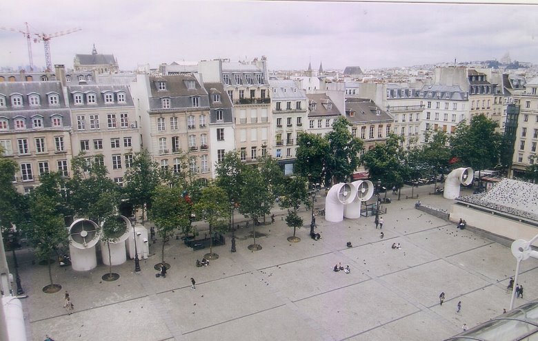 A unas 10 cuadras de allí en agradable caminata, entre Les Halles y Le Marais, surge la mole del Pompidou con sus escaleras mecánicas cubiertas de ingreso, trepando por el muro exterior como un gusano, sus grandes tuberías de colores, enfrentando la placita Stravinsky y rodeado por un pequeño parque, un estanque y, hacia un costado, se ven los fondos de una iglesia de bellas formas. A su alrededor han proliferado los barcitos y restaurants turísticos con menús relativamente económicos. El museo muestra cuadros de Dalí y unos pocos Picassos, pero son muy numerosas las exposiciones transitorias y la exhibición de películas de distintas épocas, material histórico, etc. No es el tipo de museo que me embelesa, pero a no dudarlo, sus colecciones son de gran valor para los entendidos.