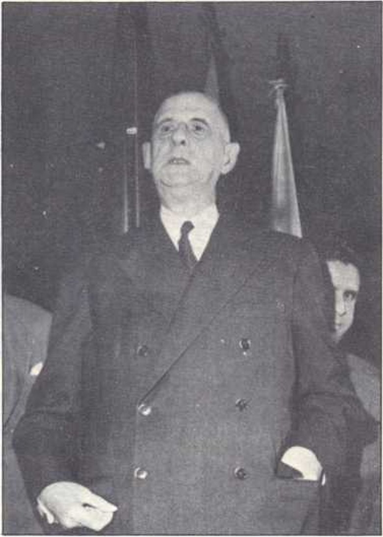 Como siempre en este caso, unos facciosos levantan la cresta. Algunos, un puñado, zumban tan fuerte qué logran despertar la creencia de que está incubándose una revolución. Otros califican de leucemia el debilitamiento nacional. Y la IV República se cree verdaderamente malherida. En su misma médula. Se abandona, al modo de los gorilas en los que el instinto de conservación de la vida ha huido hasta tal punto que ya no construyen madriguera y frenan la reproducción de la especie. La IV República recibirá la muerte. Sin embargo, antes de hundirse, en 1957, verá pasar la antorcha a manos del gran paladín que no se había en absoluto retenido para recriminar sus errores: Charles de Gaulle, general de brigada en situación de retirado.