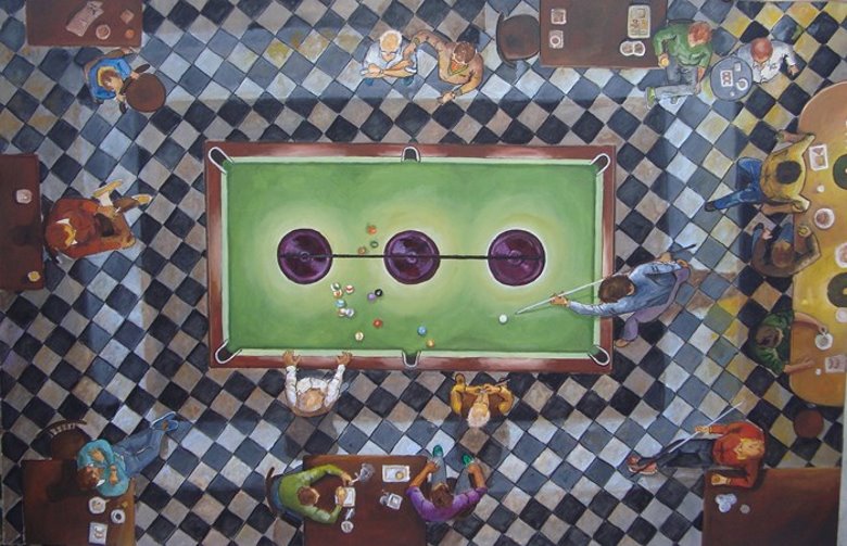 Cuadro realizado para el Club Plaza Jewel , en Rosario , con tema de Rugby.-