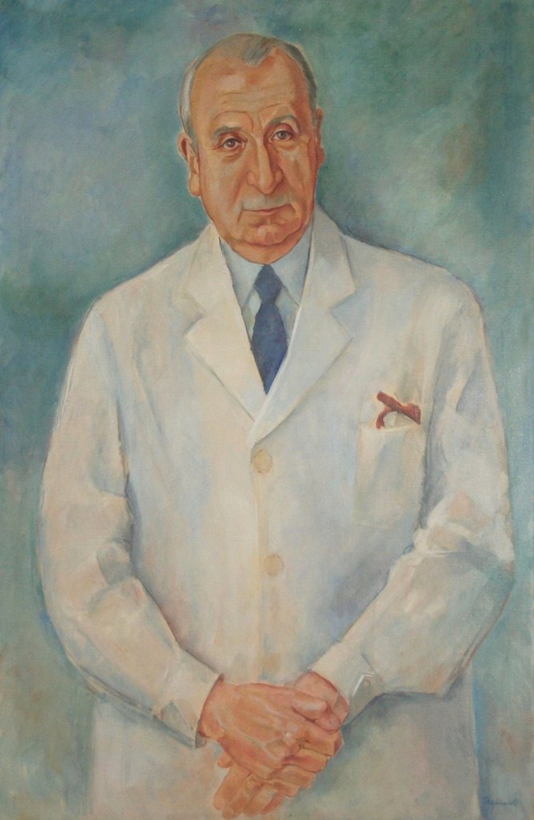 Una colección de cuadros de ilustres médicos de la ciudad de Rosario, pintados por el artista Osvaldo Traficante.