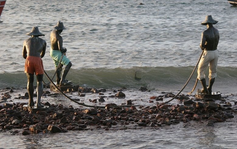 El primer alcalde de Búzios, después de la emancipación, fue Mirinho Braga. En la inauguracion de Brigitte Bardot, me dijo que le gustaría honrar a los pescadores y me pidió que pensara en una escultura. Hablé con los lugareños, acompañé a un arrastrero a la playa João Fernandes y vi de cerca una red de pesca. Entonces, yo, de São Paulo e ignorante de estos asuntos, comencé a entender por qué los pesos de un lado, diferentes del otro con boyas, detalles que me ayudarían en la creación del trabajo. Donde instalarlo. Caminé por el borde preguntándome de dónde serían vistos los Tres Pescadores y qué "antecedentes" tendrían. ¡Llegué a la conclusión de que estarían justo en frente de Casa do Sino, una de las características de la construcción colonial de los antiguos Búzios! Casualmente también fue donde nos alojamos aquí por primera vez por invitación de Bob Feith, un querido amigo de la época de Londres. ¡Me imaginaba la escultura fotografiada desde el mar hasta la orilla! Estaba equivocada!!! ¡Todavía no he visto una foto desde ese ángulo! Encontré que la marea alcanzó 1.20m de altura. No quería que tuvieran agua hasta la cintura cuando eso sucedió. Subimos el nivel 60 cm para que la marea golpeara las rodillas. Tom Richardson, un capitán con experiencia en regatas de navegación oceánica, con 165,000 millas de navegación, me dio las coordenadas de los zapatos de apoyo: grilletes de hormigón anclados y cubiertos de piedras. ¿Qué tan grandes serían para no obtener visas pequeñas a 30 m de la orilla? Aún sin la base de 60 cm, alquilé un andamio y le pedí a nuestro amigo y topógrafo Eduardo Chámel, que tenía 1,98 m de altura, que posara con una cuerda en la mano, simulando una red. Fue mi primer modelo para calcular la proporción y la altura de la escultura. Luego vino Mauro, un marinero en la goleta de Omar Carneiro da Cunha, para ser el modelo del cuerpo. Y así se hicieron los "Tres Pescadores". Para mi deleite, años después me sorprendió un sitio web internacional, "Las 26 esculturas más bellas y originales del mundo", ¡que colocó la obra en primer lugar en la lista de la categoría de esculturas públicas vinculadas a la historia de una ciudad! ¡Otro regalo de Visa para la ciudad de Búzios! ¡Viva Ricardo Gribel! ¡Viva Gastão Matos! ¡Les debía esta historia!"