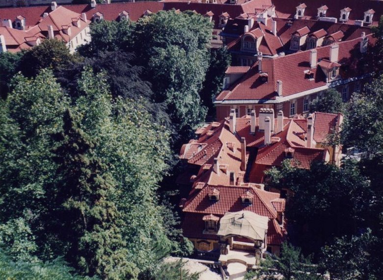 A medida que nos acercamos al extraordinario conjunto que domina el Castillo, por un camino en ascenso, el ambiente se torna más tranquilo, el aire más fresco y las casonas, más grandes. Estamos en la zona donde ahora predominan las embajadas y edificios públicos ocupando antiguos palacios mantenidos con todo esmero. Nada parece decadente ni se aprecia algún deterioro; los techos rojos a dos aguas brillan con el fulgor de lo reciente, los frentes muestran una pintura esmerada, las rejas de hierro trabajado son estupendas y los jardines que se vislumbran tras ellas están minuciosamente cuidados. Es como si el viejo barrio residencial de la alta burguesía de la Mala Strana con sus cuatro siglos a cuestas, se hubiese inaugurado ayer y hoy estuviésemos disfrutando el magno estreno.