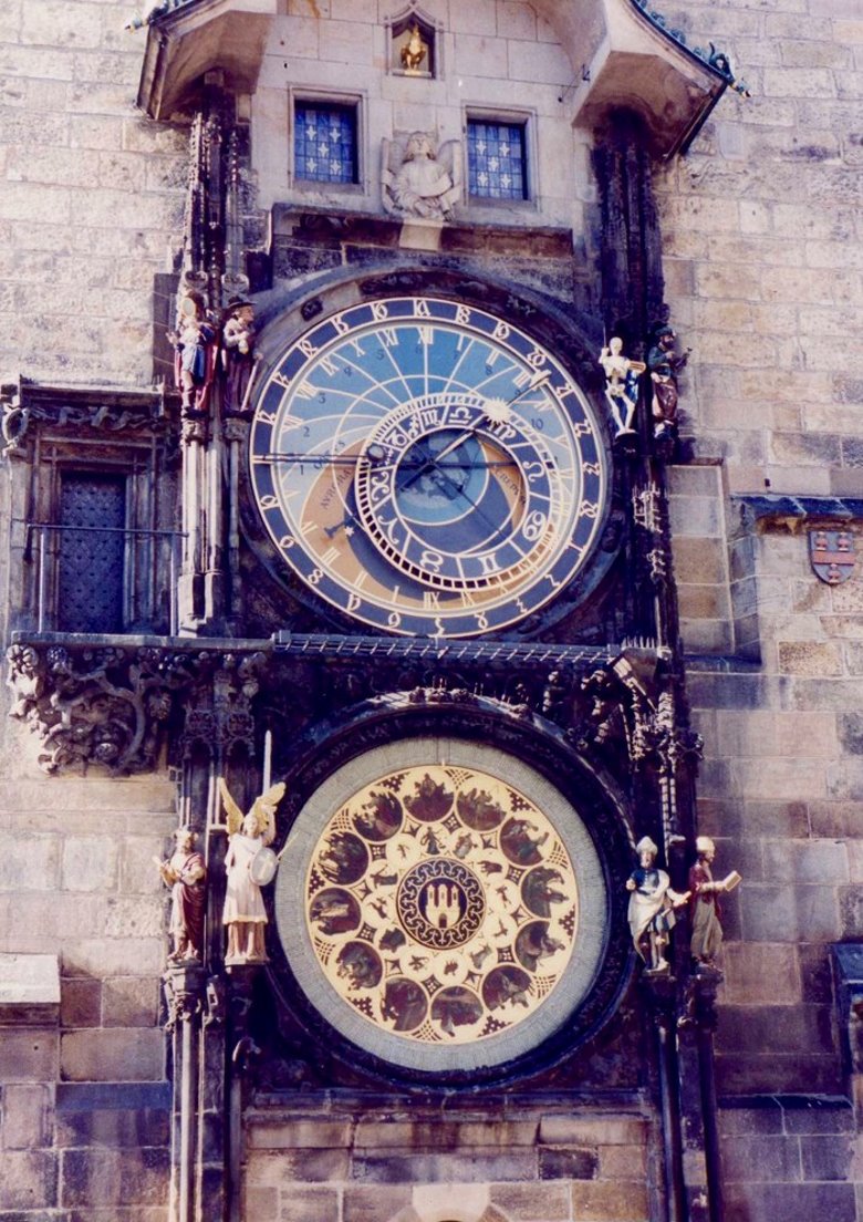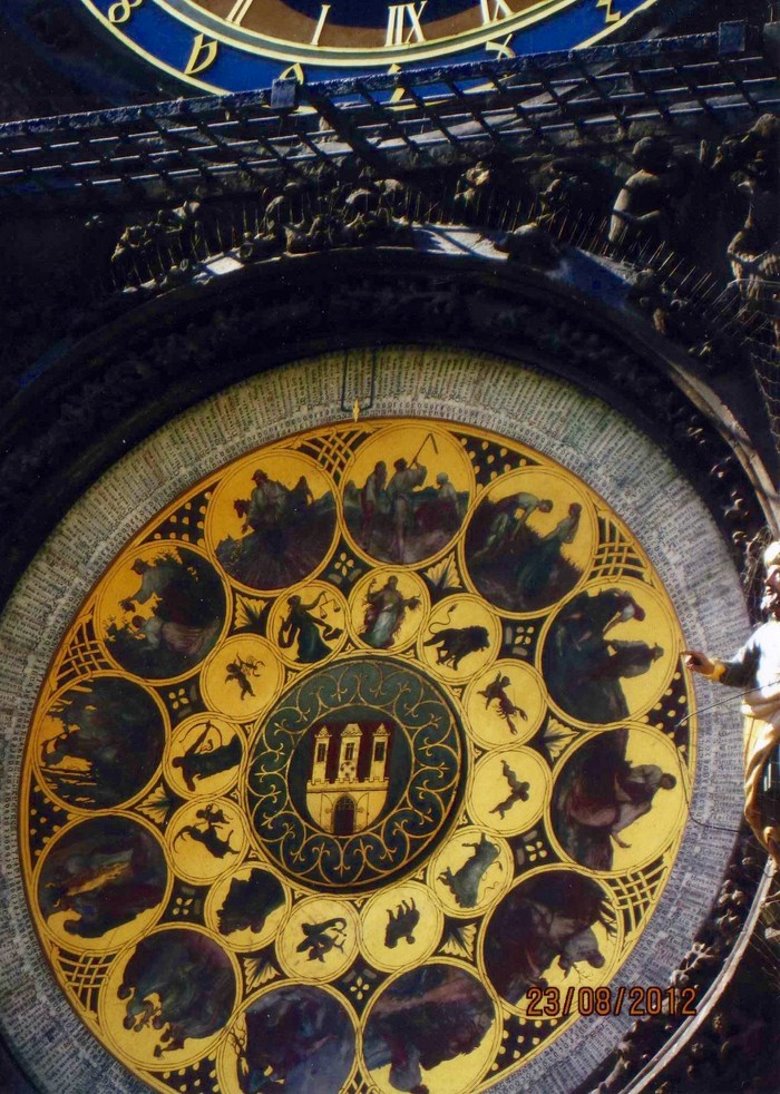 Con entusiasmo muy particular caminamos en dirección a la ciudad vieja (stare mesto), pasando por tiendas de lujo, grandes almacenes y librerías. Unos pasos más y entramos en un área peatonal que tras un recodo, nos introducía en un ambiente mágico y medieval. Allí estaba el ayuntamiento viejo, con su increíble reloj astronómico que es una pieza única fabricada en 1410 por el artista checo Manes y que aún sigue funcionando a la perfección. Este verdadero artefacto consta del reloj en sí, que es un enorme círculo dorado con números romanos para indicar las horas, mostrando también los movimientos del sol y la luna a través del zodíaco. Por debajo, un disco bruñido en oro, muestra 12 escenas de campo que se corresponde con los 12 meses del año y que van rotando y por encima aparece la imagen de la muerte, representada en un esqueleto humano da vueltas un reloj de arena con fúnebre sonido, al tiempo que un gallo agita sus alas y cacarea. Al dar las horas, todo se pone en movimiento y por una ventanita los doce apóstoles se asoman dando al conjunto una gracia y frescura increíble.