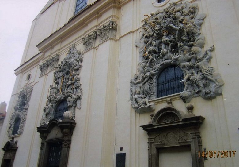 Saliendo ahora de la Iglesia, hacia la derecha se divisa la fachada neoclásica del palacio de von Liechtenstein, llamado “el sangriento” por la brutal represión de una revolución popular en 1618. Y hacia la izquierda, caminamos unas pocas cuadras por la calle Karmellitska hasta otra iglesia famosa, “Santa María de las Victorias” que conserva en su altar al “del niño Jesús de Praga”, figura española de Jesús niño con 39 ropajes que se cambian según las épocas, es venerada por una nutrida parte de la comunidad católica.