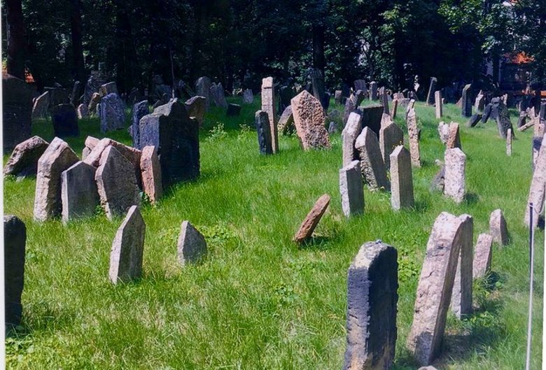 Y finalmente está “ese” cementerio, el más renombrado en historias y leyendas de la ciudad: el gran Cementerio Judío. El de Praga es el más antiguo y el más conocido de toda Europa. Fue creado en el siglo XV y fue creciendo por sucesivos entierros en un área relativamente pequeña. A la fecha se contabilizan unas 12000 lápidas, con tumbas a veces superpuestas. Esas lápidas contienen, además de nombres y fechas, referencias familiares y textos o poemas que expresan el sentir por el fallecido. Al parecer, la tumba más antigua es la del poeta Karo, en 1439 y entre otras antiguas está la del famoso rabino Rabi Low (1609) asociado con la leyenda del Golem.