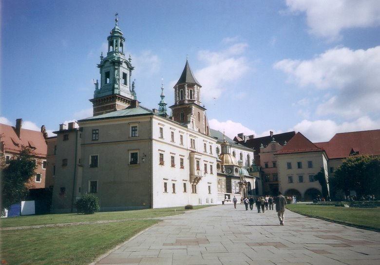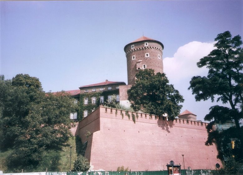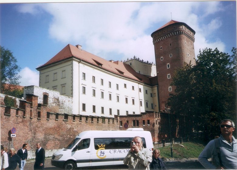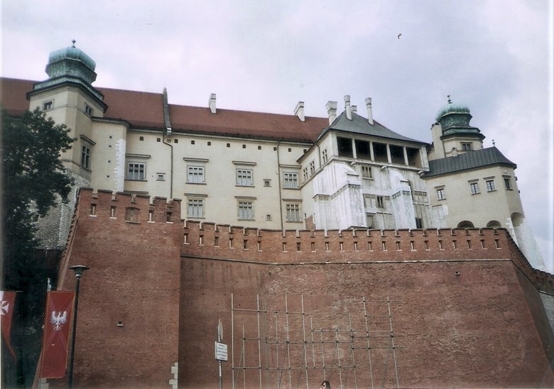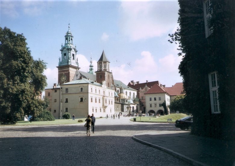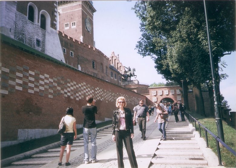 La colina Wawel es una pequeña ciudad amurallada, sobre la rivera del Vístula, que incluye edificios magníficos, como la catedral, sus museos y el famoso castillo, a unas 10 cuadras al sur de la ciudad vieja. Las murallas son muy completas y bien conservadas con grandes lajas y ladrillos de color rojizo. Para ingresar se asciende por una larga escalera- rampa y sobrepasada la estatua ecuestre de Tadeus Kosciuszko y se dobla a la izquierda para ingresar en una amplia plaza central, rodeada por el importante conjunto de edificios, que ya hemos citado. Cabe mencionar que, en ese entonces, cada lugar de visita sólo admitía un número determinado de ingresantes, por lo que resultaba conveniente sacar los boletos con anterioridad, pues, de lo contrario, la recorrida podía frustrarse.