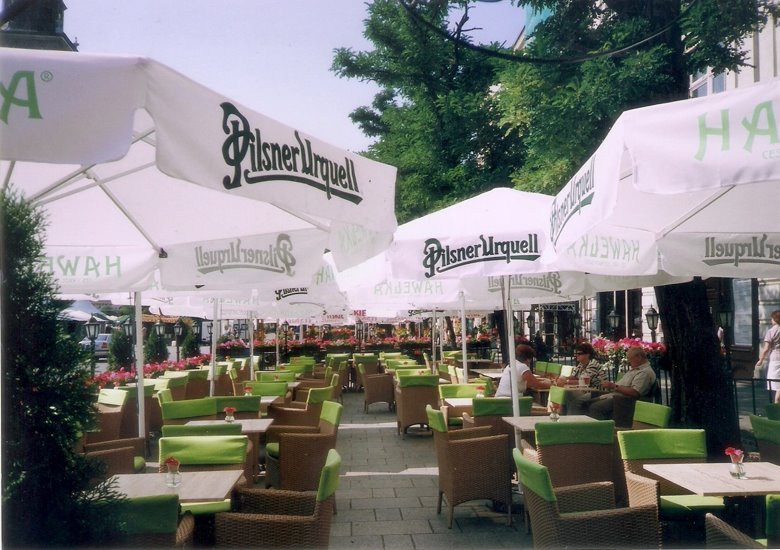 Como se dijo, muchos restaurantes abren sus puertas sobre la gran plaza, con blancas sombrillas para proteger del sol en las mesas de las veredas. En la vecindad se encuentra el restaurante de Wierzynek, en su momento de esplendor frecuentado por reyes y, según la promoción, el más antiguo de Europa en actividad continuada.