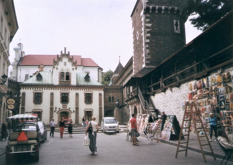 Krakovia fue una ciudad amurallada con 8 puertas fortificadas de ingreso. La mayor parte de las murallas fueron eliminadas con la idea de “modernizar” la ciudad a finales del siglo XIX, por lo que sólo quedó una sección de dos plantas que incluye la Puerta de Florian. Ese sector de la muralla, se levantó en el 1300 y la parte superior fue agregada posteriormente. La muralla incluye dos torres y también se suma un bastión circular de ladrillos con paredes de 3m de espesor y múltiples perforaciones para visión del exterior, siendo una pieza de valor defensivo que se agregó a las murallas para protegerlas al final del siglo XV, denominada Barbican. Está adjunta y por delante de la puerta de Florian y en su origen se conectaba con ésta. Tal estructura es una de las pocas que se han conservado en la Europa central y puede visitarse con el sector remanente de la vieja muralla. Vale la pena hacerlo.