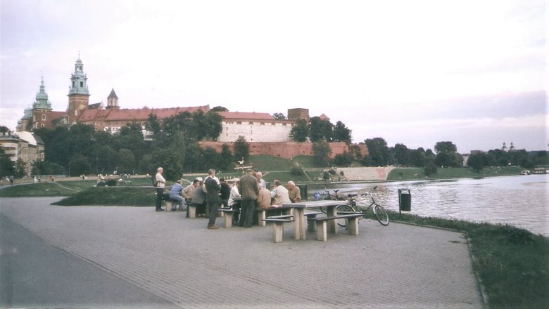 El escaso tiempo restante de nuestra estadía lo empleamos en una recorrida por barco de una o dos horas sobre el Vístula, apreciando en sus orillas, viejos palacios, importantes monasterios muy bien conservados, iglesias, algunas casas nuevas y hoteles renovados, así como embarcaciones fijadas a la orilla y transformados en restaurantes. También cerca de la colina y a orillas del río, se levantan varias mesas de ajedrez y resultaba común en esos atardeceres ver jugadores y público muy interesados en los movimientos de las piezas del juego-ciencia.